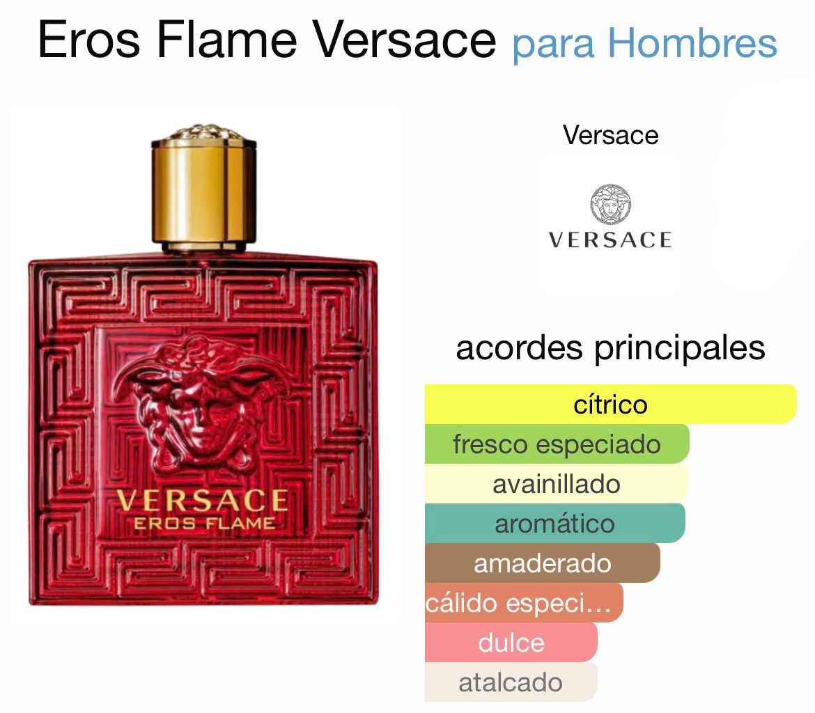 Eros Flame de Versace es una fragancia de la familia olfativa Amaderada Especiada para Hombres. Eros Flame se lanzó en 2018. La Nariz detrás de esta fragrancia es Olivier Pescheux. Las Notas de Salida son mandarina, pimienta de Madagascar, limón (lima ácida), Chinotto y romero; las Notas de Corazón son geranio, rosa y Pepperwood™️; las Notas de Fondo son vainilla, haba tonka, sándalo, cedro de Texas, pachulí y musgo de roble. e100ml.